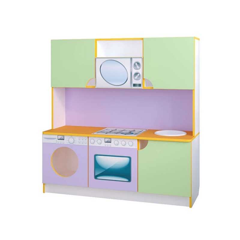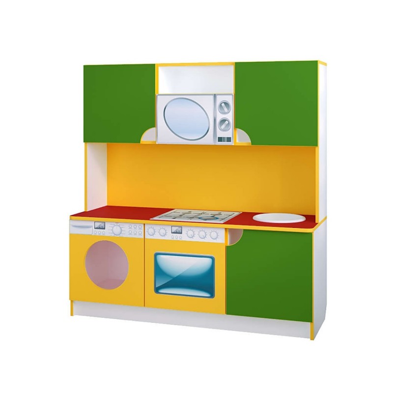 Предлагаем игровую кухню «Малютка» размером 1200*430*1250 мм. Вес кухни - 52 кг. Данная кухня будет способствовать развитию кулинарного таланта среди деток. Ребятишки получат с ранних лет возможность ощутить всю прелесть приготовления блюд. Данная игровая мебель предназначена для оснащения детских дошкольных учреждений, а также для детской комнаты дома. Играя, девочки и мальчики научатся пользоваться различными кухонными принадлежностями, получат радость от приготовления пищи и угощения своих друзей. Данная развивающая игрушка предназначена для детей от 2 лет. При изготовлении использовано качественное, экологически чистое и прочное ламинированное ДСП толщиной 16 мм. Торцы изделия облицованны кромкой ПВХ толщиной 1 мм.