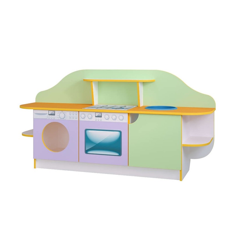 С помощью нашей игровой кухни "Золушка" каждая малышка сможет попробовать себя в роли настоящей хозяюшки. Играя, ребенок будет развивать свою фантазию и творческие способности. Детишки получат массу приятных впечатлений от приготовления кулинарных шедевров, будут угощать ими своих гостей. Данная игровая кухня также приучит детей к порядку, покажет важность роли мамы. Наша детская кухня гармонично впишется в игровой уголок детского сада или дома.