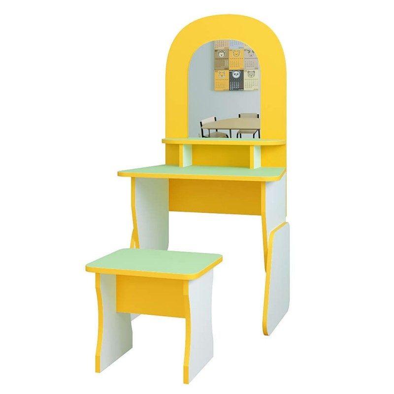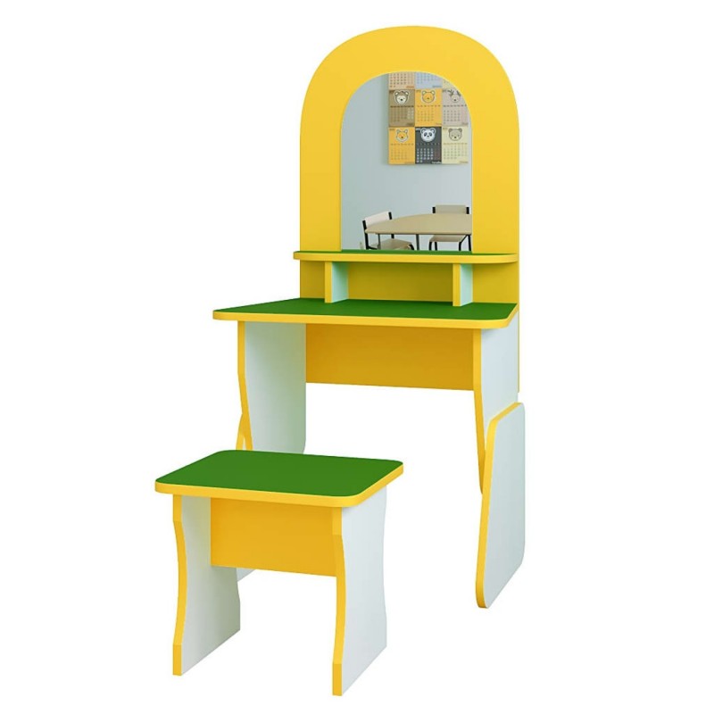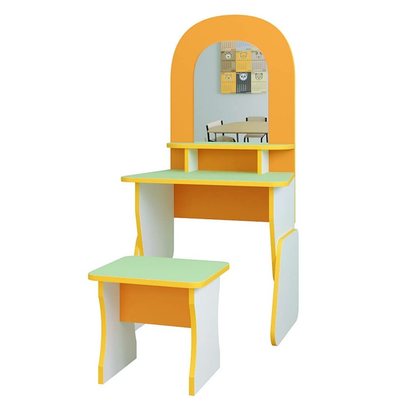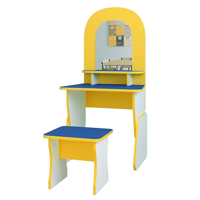 Пропонуємо Вам дитячу ігрову стінку "Перукарня" розміром 600*400*1250h мм. Вона призначена для ігрового куточка дитячого садка. В ігровий набір входить два предмети: стіл із дзеркалом та стільчик. Дані ігрові меблі відносяться до розвиваючих іграшок, призначені для дітей від 2 років. Граючи, діти розвиватимуть свої творчі здібності, фантазію, відчують себе в ролі перукаря та стиліста. Наша ігрова стінка гармонійно впишеться у будь-який інтер'єр приміщення. Матеріал виготовлення якісний, екологічно чистий та міцний: ламіноване ДСП завтовшки 16 мм. Торці виробу облицьовані кромкою ПВХ 1 мм.